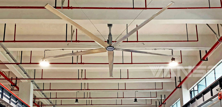 凡斯智能的一臺7.3米工業(yè)大風(fēng)扇本身可以覆蓋1900平米的建筑空間。工業(yè)大風(fēng)扇與現(xiàn)有 空調(diào)系統(tǒng)結(jié)合使用,可以讓您將空調(diào)設(shè)定點調(diào)高3到7度,并獲得相同的冷卻效果,同時還能降低約20%的能源成本。