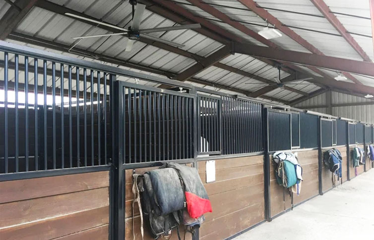 減少濕氣水分 工業(yè)吊扇憑借持續(xù)的氣流,可防止馬廄內(nèi)積聚濕氣,這有助于最大限度地減少冷凝,降低發(fā)霉的風險—尤其是干草。